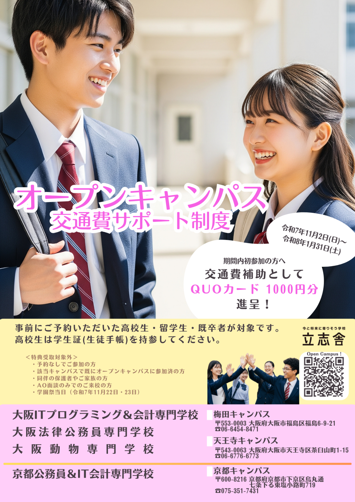2025年11月2日(日)~2026年1月31日(土)の期間中のオープンキャンパス