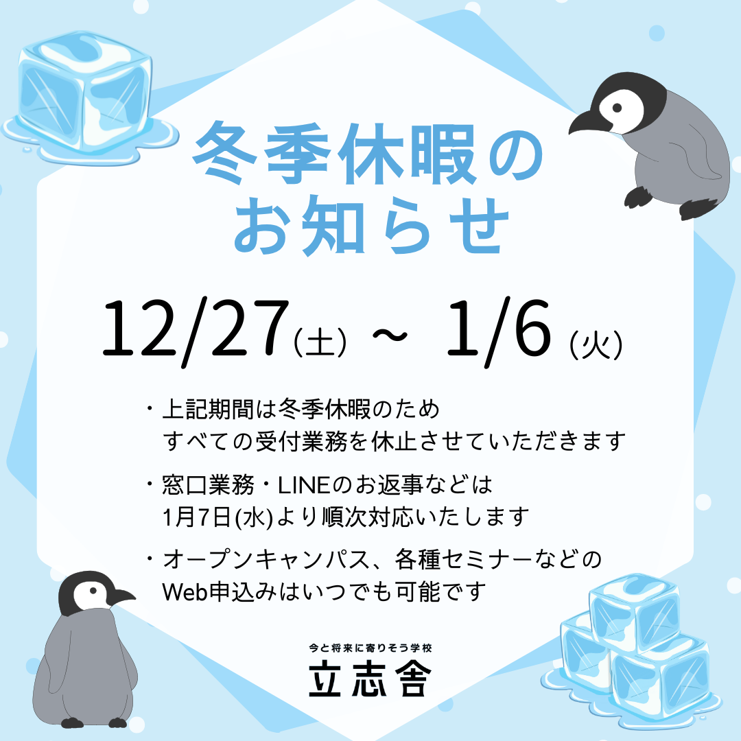冬季休暇中の受付業務休止について【12月27日(土)~1月6日(火)】